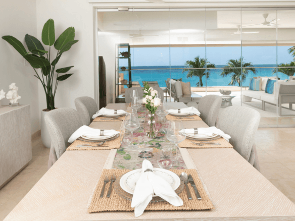 Experience the epitome of luxury living at Portico Unit 2 in Barbados ~ a stunning beachfront residence where every detail is meticulously designed for unparalleled comfort and elegance. Spanning an impressive 3,730 square feet, this fully furnished and professionally decorated unit exemplifies a harmonious blend of modern sophistication and island charm, ideal for those seeking an exceptional Caribbean lifestyle.