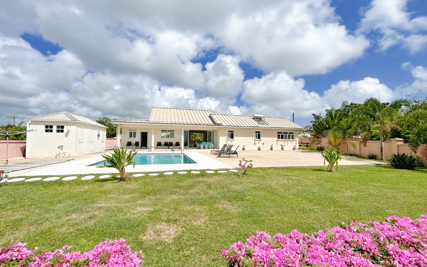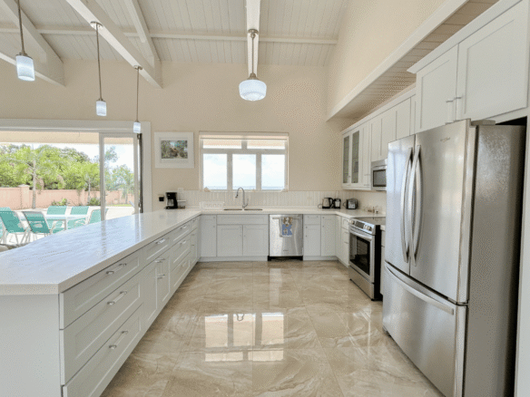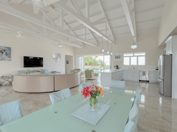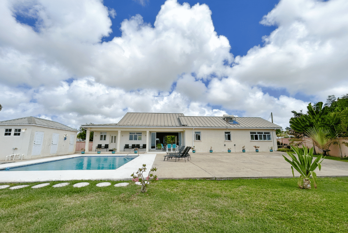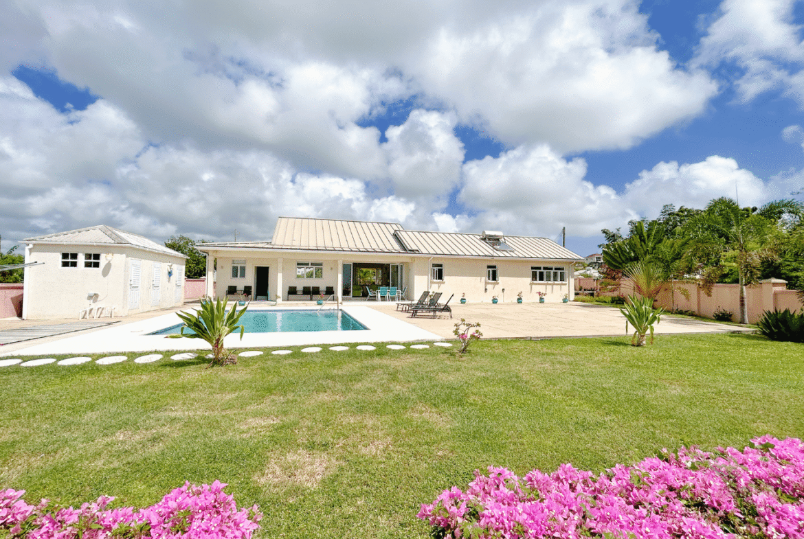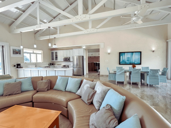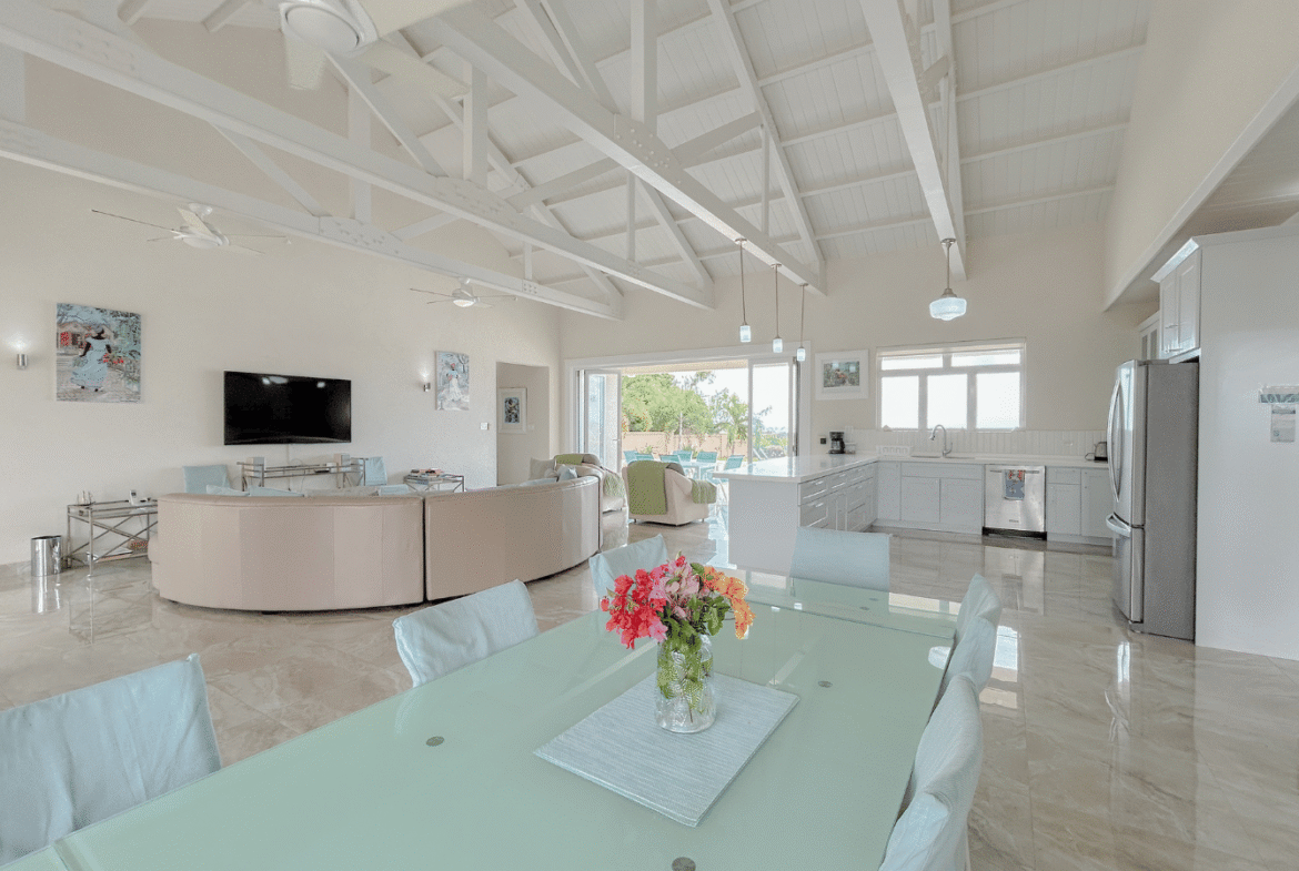 Set on a generous, elevated lot within a quiet and established residential neighborhood, this South Coast Barbados property for sale is thoughtfully designed to maximize natural light, cooling trade winds, and seamless indoor-outdoor living. The open-plan layout features spacious living and dining areas that flow effortlessly into a fully equipped kitchen – perfect for entertaining family and guests. Vaulted ceilings enhance the sense of space, creating a bright and airy atmosphere throughout.